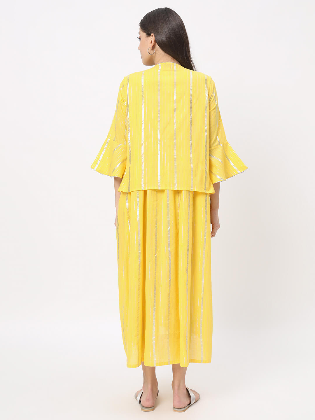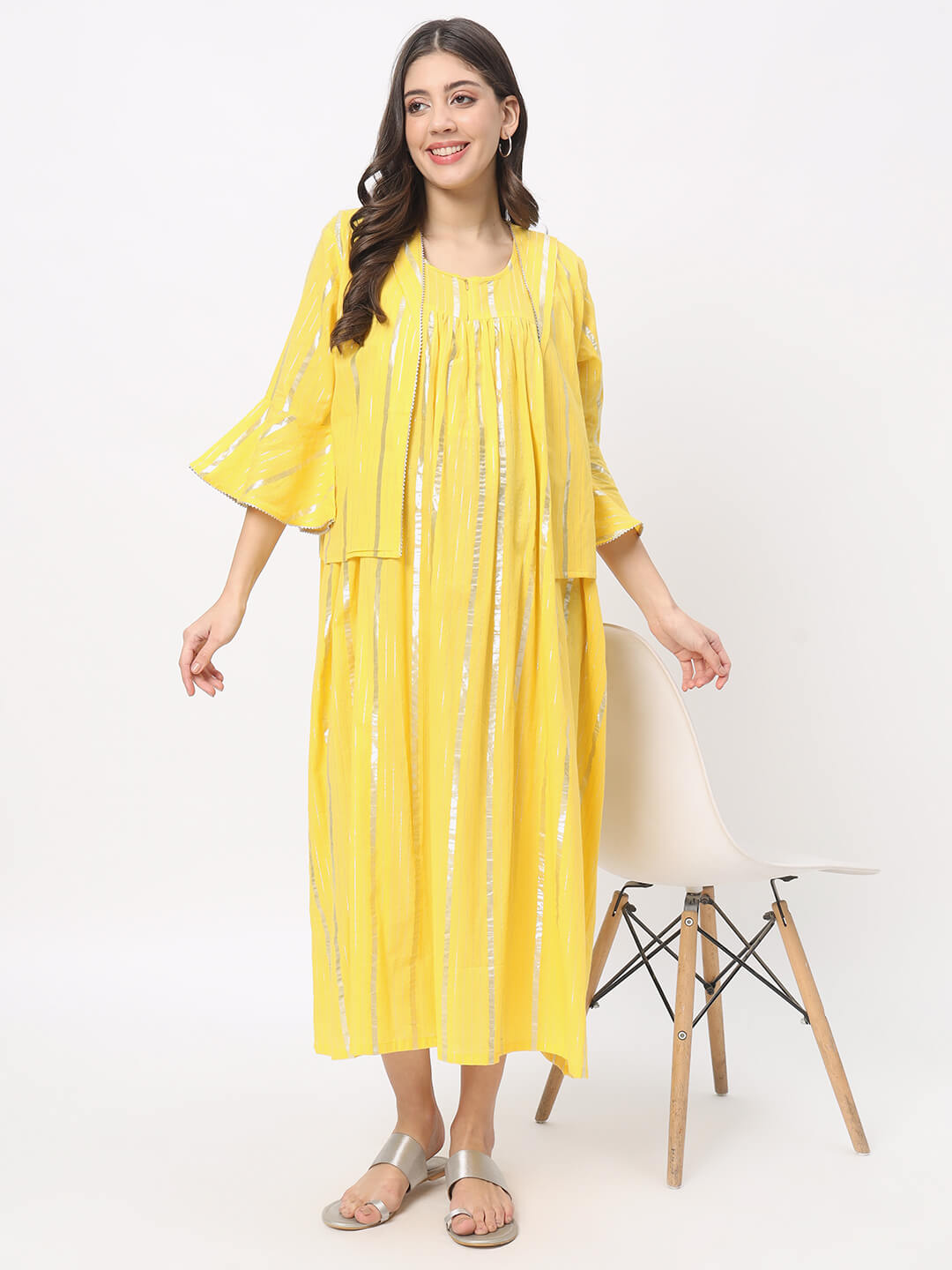Yellow Cotton Maternity Feeding Flared Jacket Dress