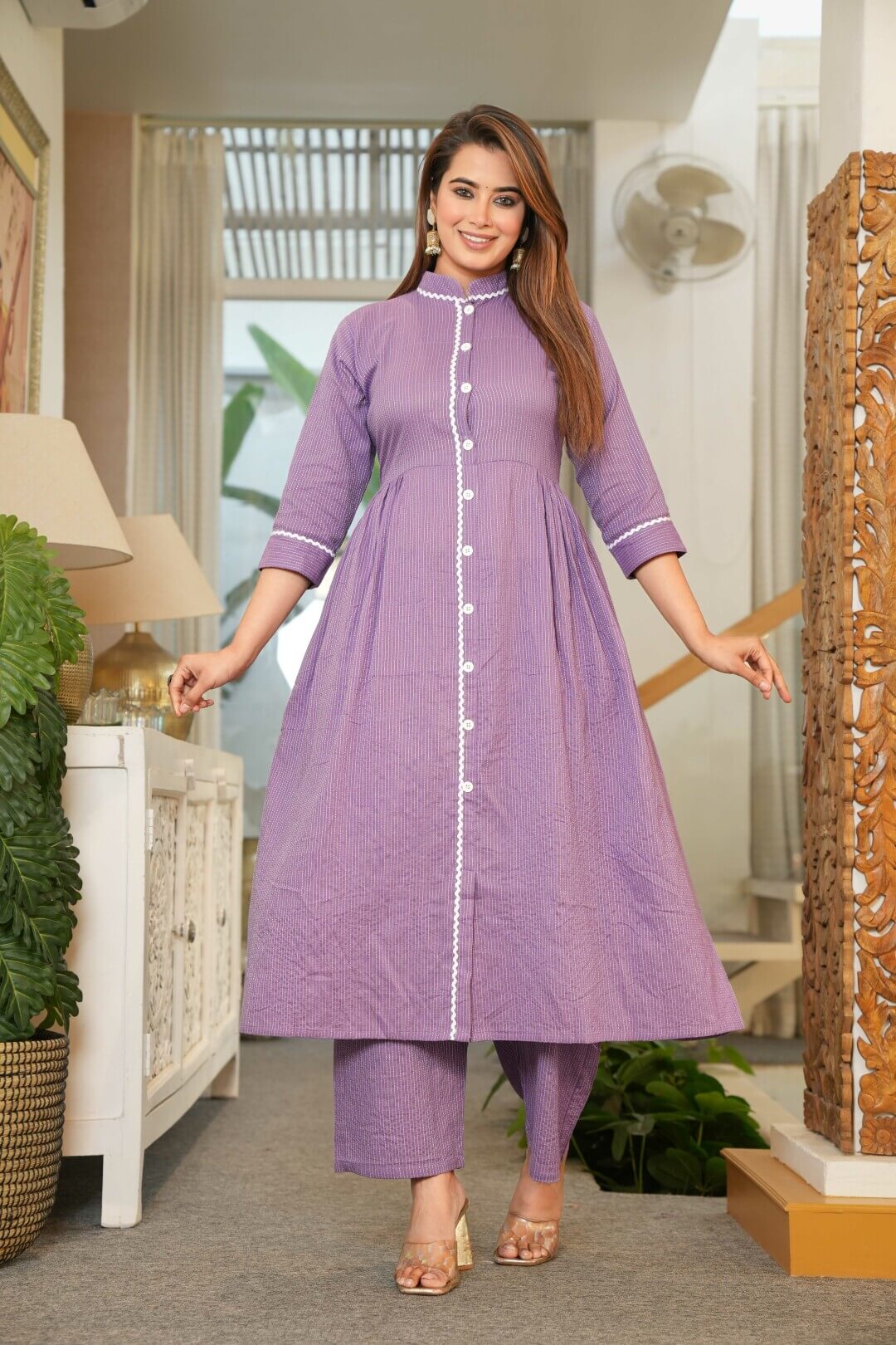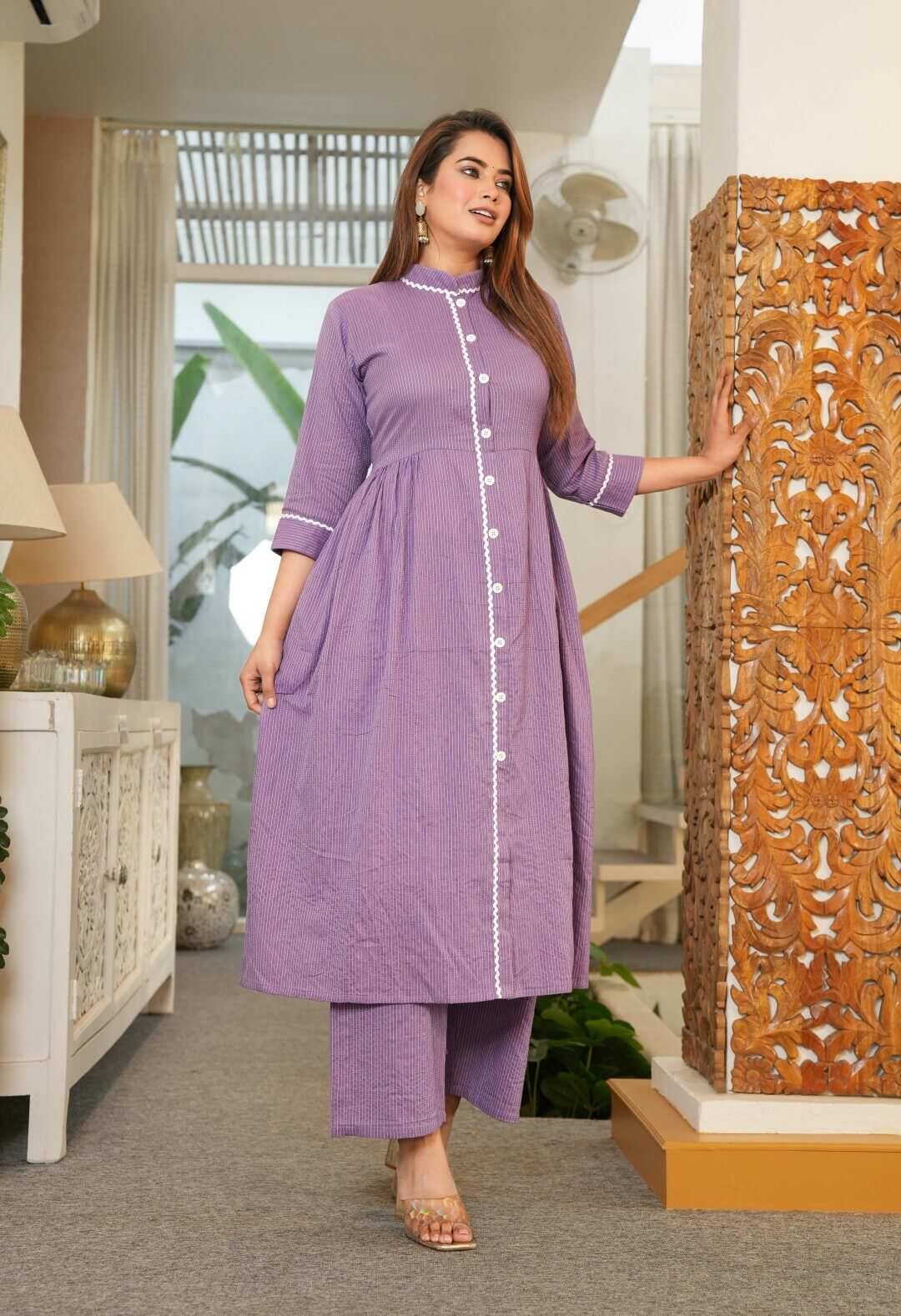 Lavender Cotton Maternity Feeding Flared Kurta Set